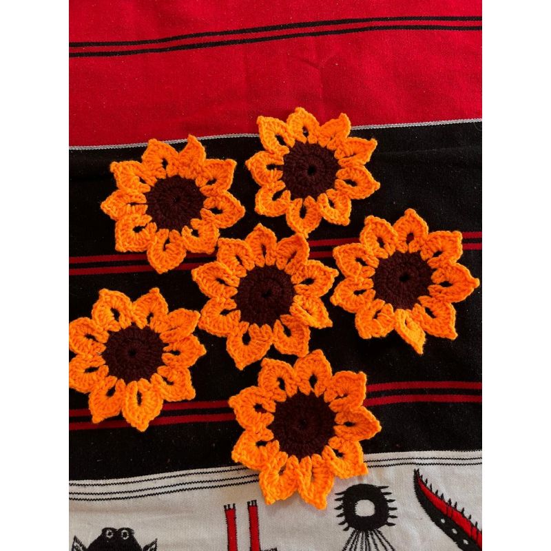 Add a burst of sunshine to your table with this charming set of 6 handmade crochet tea coasters, inspired by the beauty of blooming sunflowers.