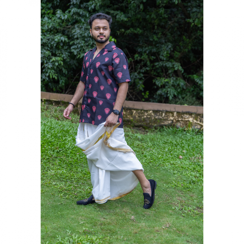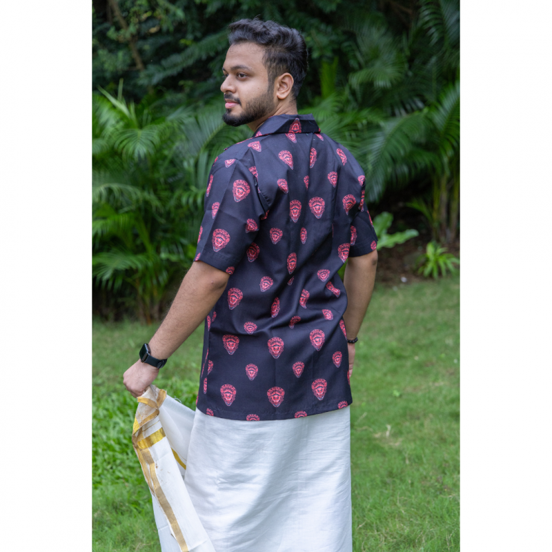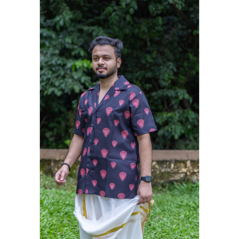 Kerala Kuthampally Cotton Theyyam Notch Collar Half Sleeve Shirt