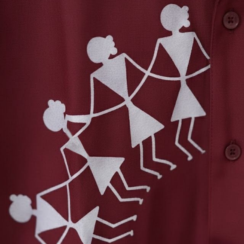 Fashionable Maharashtrian Folk Warli Art Notch Collar Full Sleeve Shirt
