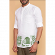 Men's Off- White Maharashtrian Folk Art Green Tribal Warli Design Loop Sleeve Short Kurta