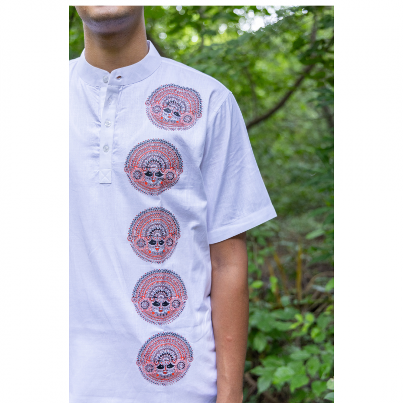 സോഫ്റ്റ് കോട്ടൺ ലിനൻ ബ്ലെൻഡ് ഒന്നിലധികം മുഖം തെയ്യം ഹാഫ് സ്ലീവ് ഷോർട്ട് കുർത്ത